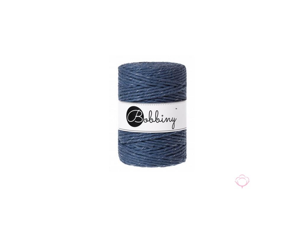 Šňůra BOBBINY XXL 5 mm - jeans se stříbrnou nitkou